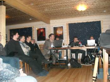 J.-P. Metsävainio kertoi tähtikuvien käsittelymenetelmistä ja 3D-kuvauksesta. 3D-kuvia katsottiin ohjausrakennuksessa ja esitelmä aiheesta pidettiin luentosalissa.