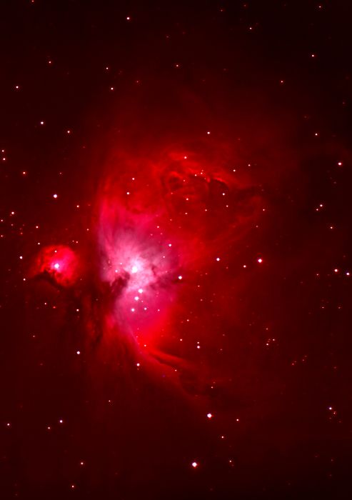 Kuvassa näkyy Orionin suuri emissiosumu M42 ja sitä huomattavasti pienempi M43. M43 näkyy kuvan vasemmassa reunassa suunnilleen keskivaiheilla ja muistuttaa suuresti pisaraa. Suuren emissiosumun keskellä näkyy lähes valkoinen alue ja tämän keskellä on moninkertainen tähti Trapetsi, siinä on ainakin kuusi komponenttia. Trapetsin säteily saa ympärillä olevan vedyn loistamaan ja tämä näkyy punaisena sumuna. Kuva on otettu "modatulla" Canon EOS 350D:llä ja 800 mm/f4 peilikaukoputkella. Seurannasta huolehti omatekoinen jalusta. "Modattu" kamera tuo huomattavasti paremmin esille sumun punaiset alueet kuin vakio EOS350D. Kuvauksessa käytetyt välineet maksoivat alle 2000 € ja tämä kuva on otettu huonoissa olosuhteissa.