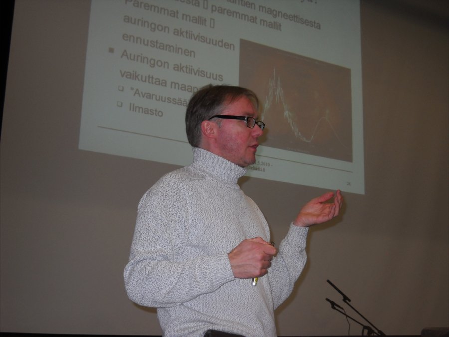 Auringon ja muiden tähtien magneettinen aktiivisuus ilmenee mm. pilkkuina ja koronana. Auringon aktiivisuus vaikuttaa monella tavalla maapalloon. FT Thomas Hackman Helsingin yliopistosta kertoi mistä Auringon ja muiden tähtien aktiviisuus johtuu, miten sitä voidaan havaita ja mitä hyötyä tutkimustyöstä on.