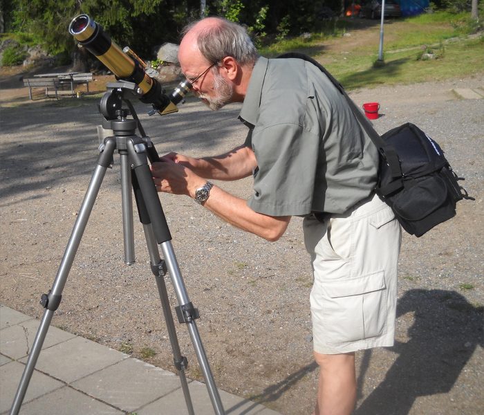 Professori Esko Valtaoja esitelmöi Kirkkonummella. Kuva Seppo Linnaluoto.