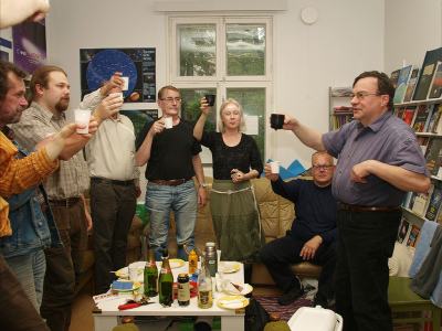 Juhlakerhoillassa kohotettiin malja 10-vuotiaalle Komeetalle. Kuva Hannu