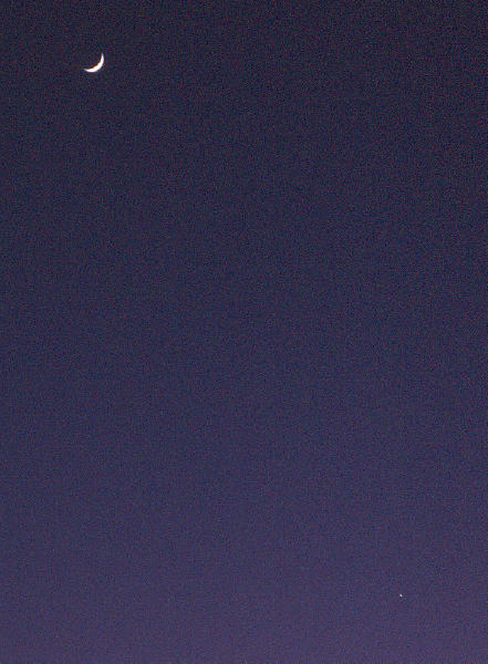 Kuun sirppi ja Venus kuvattuna iltahämärissä 20.2.2007 Objektiivi: