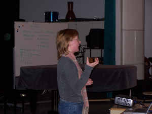 Fil. tri Jenni Virtanen esitelmöi Kirkkonummella. Kuva Seppo Linnaluoto.