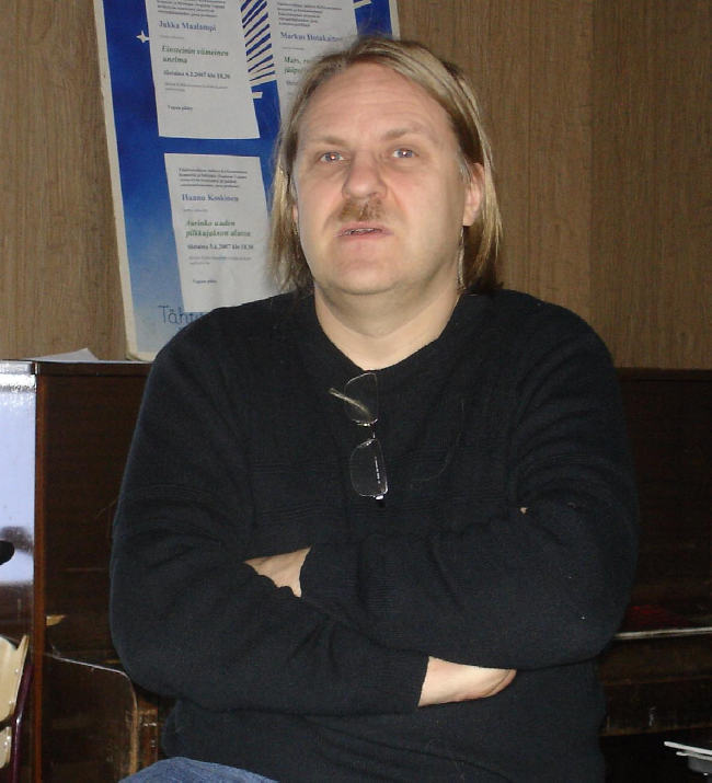 Professori Jukka Maalampi esitelmöi Kirkkonummella. Kuva Seppo Linnaluoto.