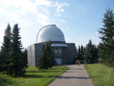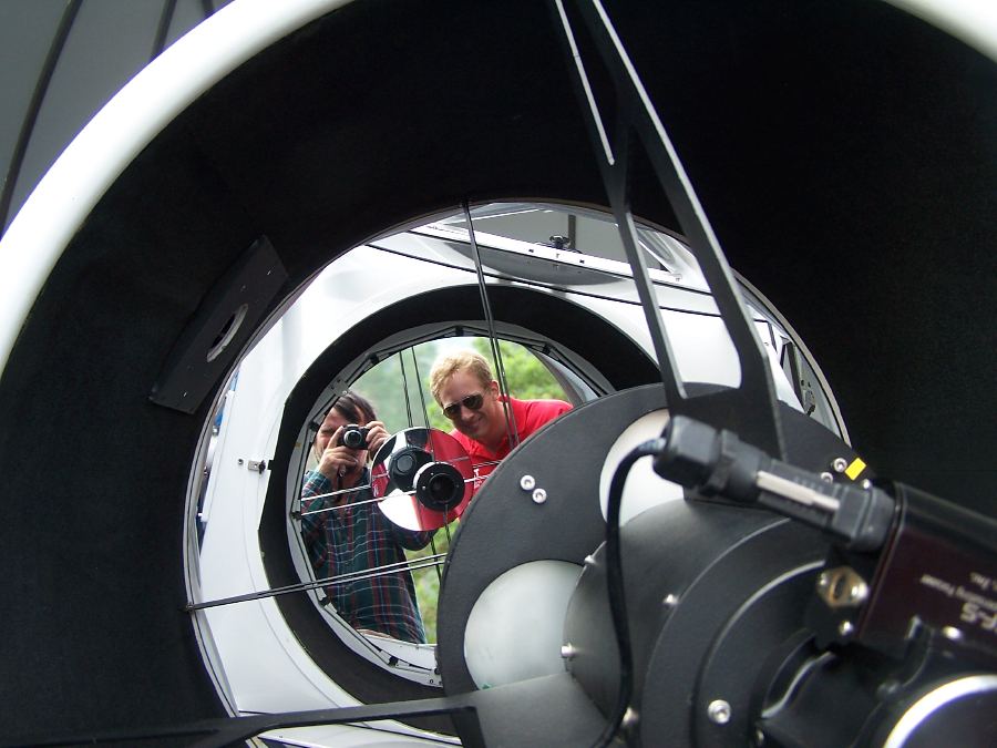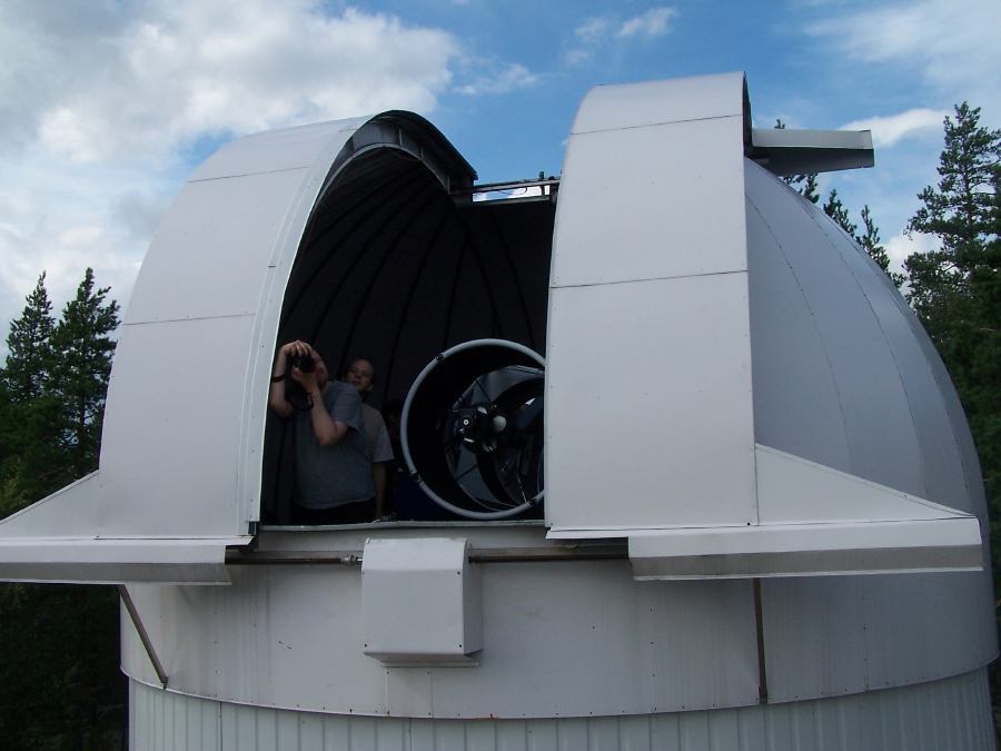 90 cm kaukoputki näkyy kupolin aukosta. Kuva Seppo Linnaluoto.