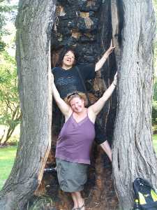 Kukka Viitala ja Eija Nyman kasvitieteellisessä puutarhassa olevassa