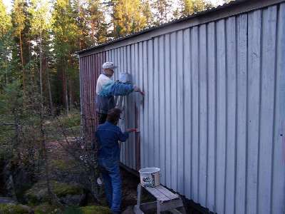 Päärakennuksessa oli jo valmiina suihkuhuone, mutta sauna oli edelleen keskentekoinen eikä takkaakaan voinut käyttää.