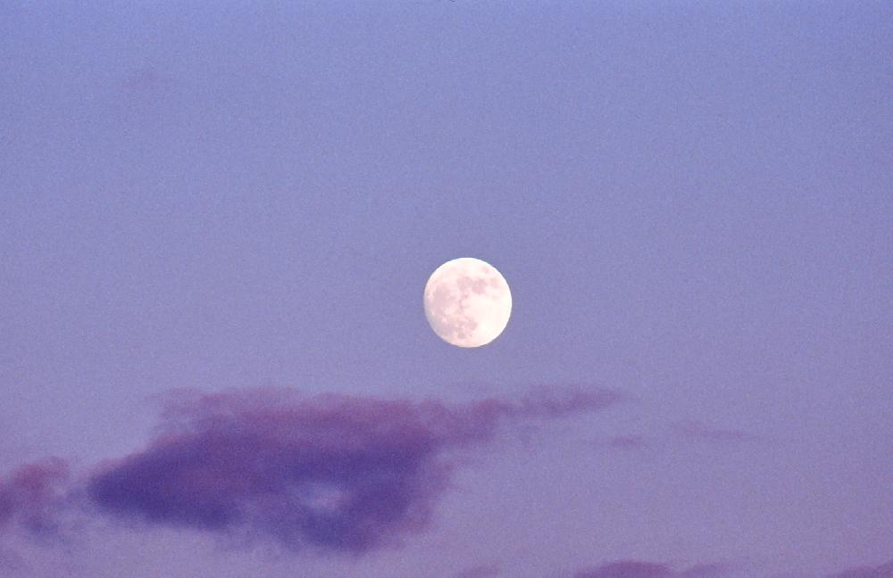Kuu pilvisellä iltataivaalla 30.4.2007 n. klo 21.00. Kuvaustiedot: objektiivi