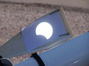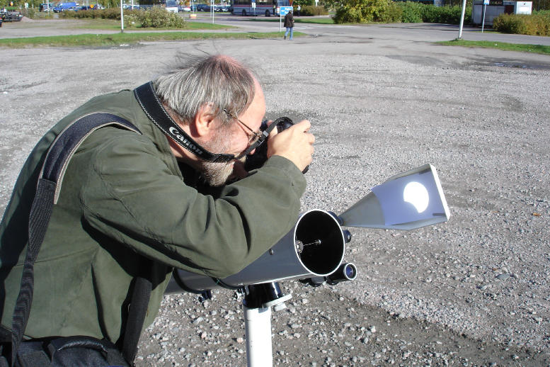 Aurinko peittyi enimmillään 26 % ja pimennys kesti tunti 50 minuuttia. Paikalla kävi yhdistyksemme jäsenten ja muiden uteliaiden lisäksi lukion yksi koululuokka.
