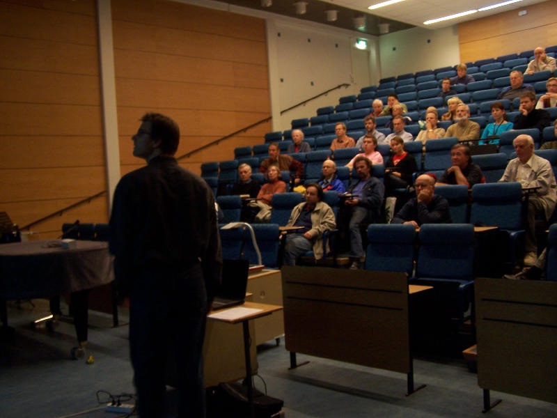 Asko Palviainen esitelmöi Kirkkonummella. Kuva Seppo Linnaluoto.