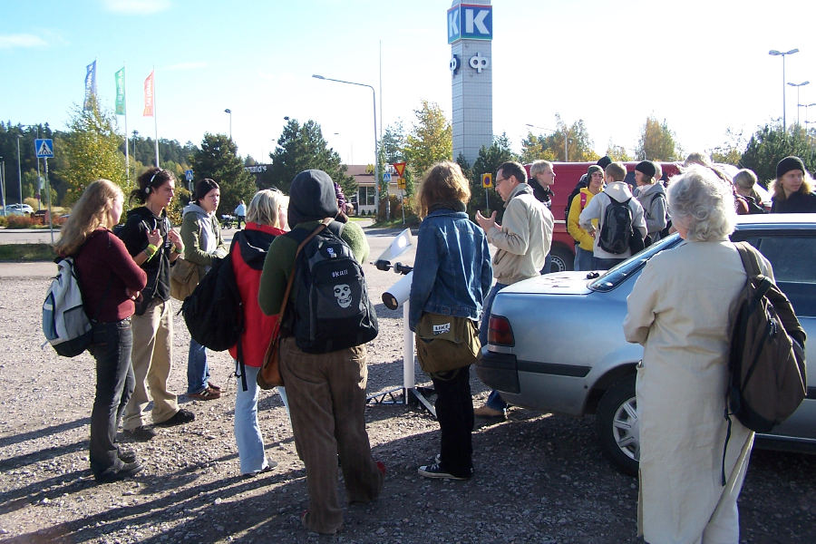 Maanantaiaamu 3.10.2005 valkeni kirkkaan aurinkoisena huolimatta sääennusteista. Sääennusteita pelkäämättä Seppo Linnaluoto oli tuonut ennen keskipäivää TAL-1 peilikaukoputken K-Senaattorin viereiselle parkkipaikalle.