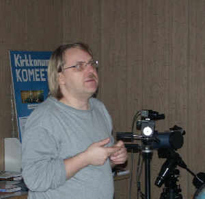 Kävin myös tähtitornissa. Siellä ei ollut kaukoputkea jalustalla, vaan se oli lattialla. Tiesinkin, että siinä oli joku elektroniikkavika. Otin ohjausrakennuksesta paikan ohjepaperit, kun niitä näytti olevan useampia kappaleita. Hieman huolestuttavalta tuntuu se, että Artjärvellä ei ole juuri otettu CCD-kuvia, vaikka komea tähtitorni on jo pitkään ollut valmiina. Artjärvi on kovin kaukana havaitsijoista! Ja kun sinne sovitaan jokin tapaaminen, silloin on yleensä pilvistä.
