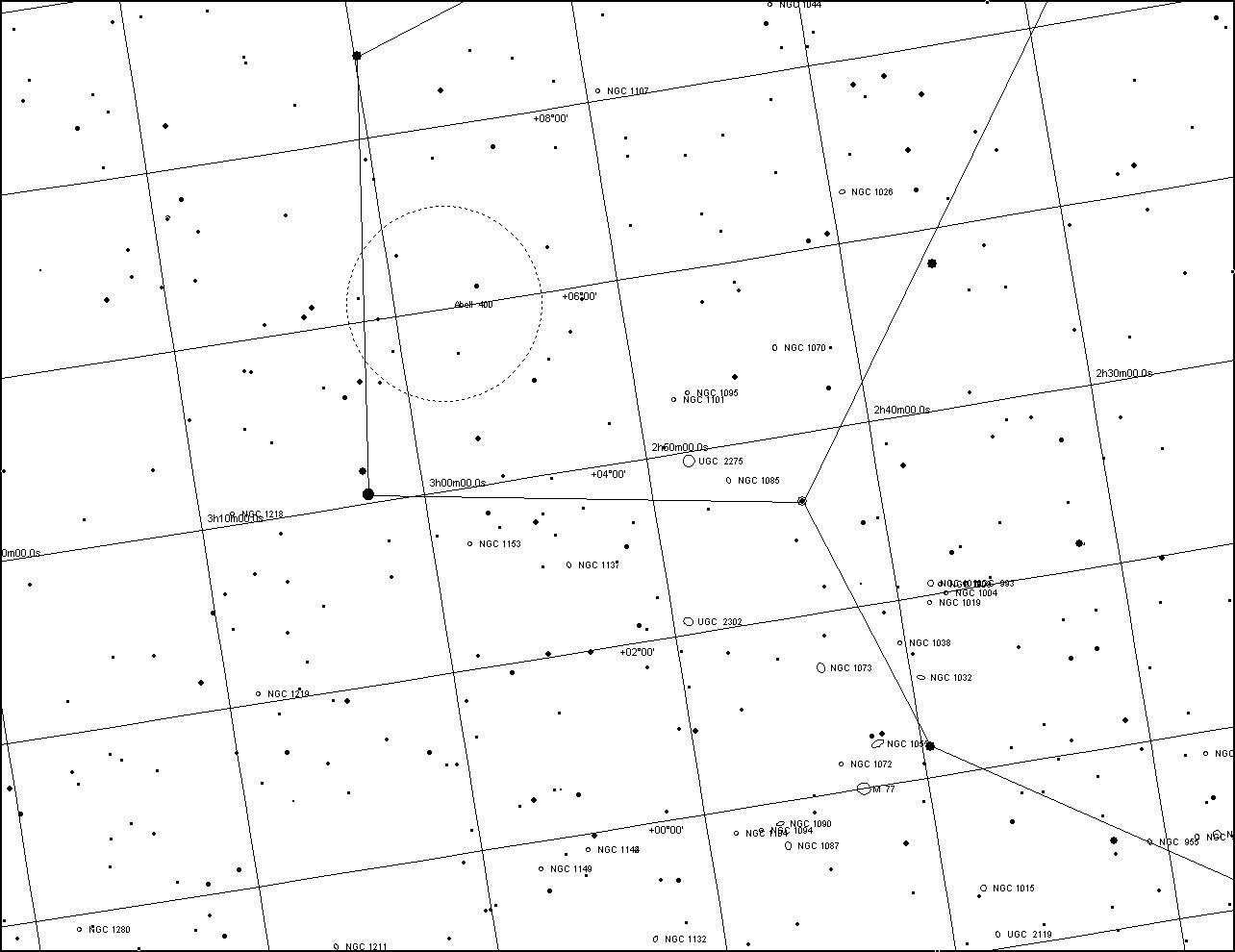 löytyy kartoista, sen koordinaatit ovat: rektaskensio 2 h 42,7 min, deklinaatio