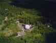 Ilmakuva Metsähovin alueesta. Keskellä radioteleskooppi, oikealla