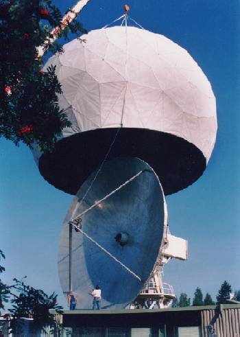 Metsähovin radioteleskoopin suojakupu vaihdettiin vuonna 1991. Huomaa