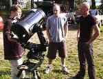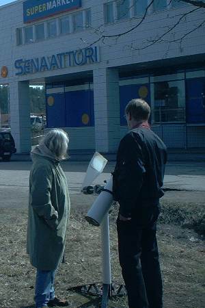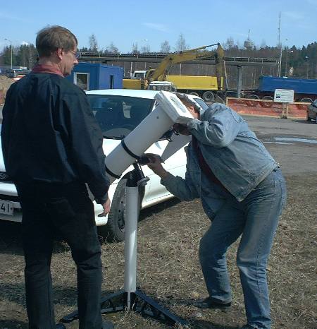 aurinkosuodatin oli kaukoputken edessä. Kaukoputkeen katsoo Kaj Wikstedt.