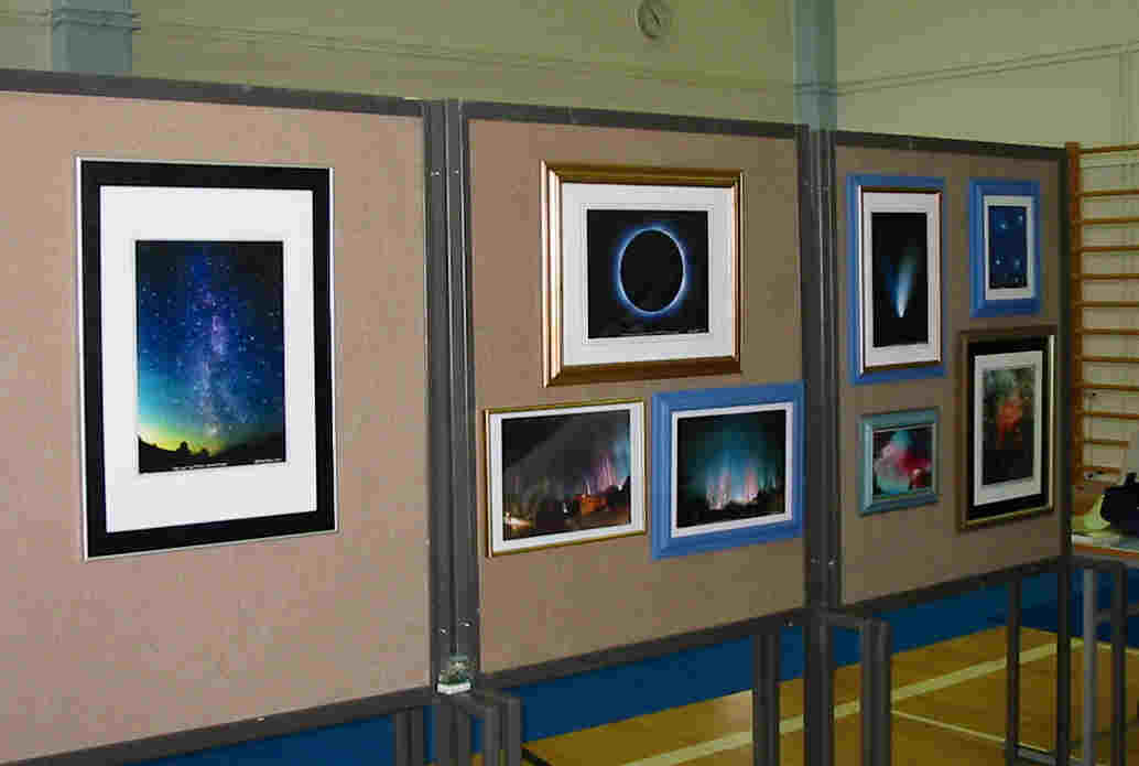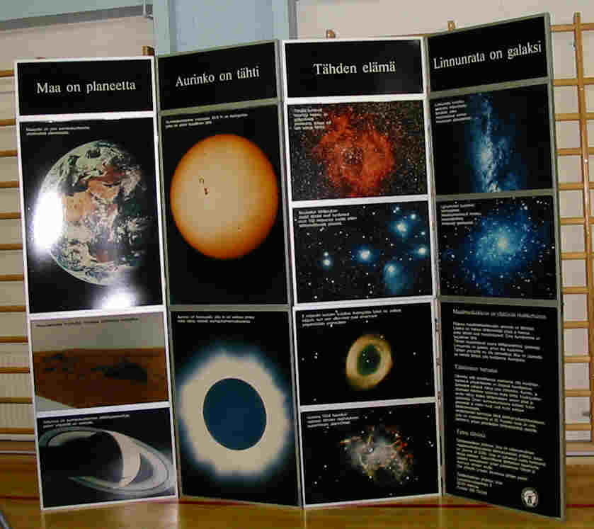 Näyttelyssä taustalla on Ursan planetaario ja etualalla