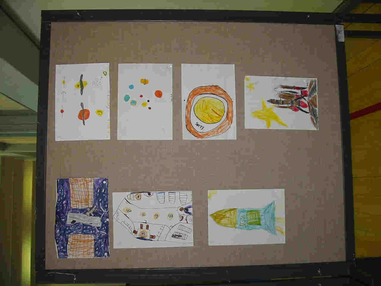 piirustuksia, taustalla planeettojen malleja oikeassa kokosuhteessa, Komeetan