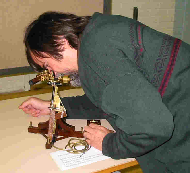 Seppo Linnaluoto katselee 11 mm kaukoputkella, joka lienee maailman