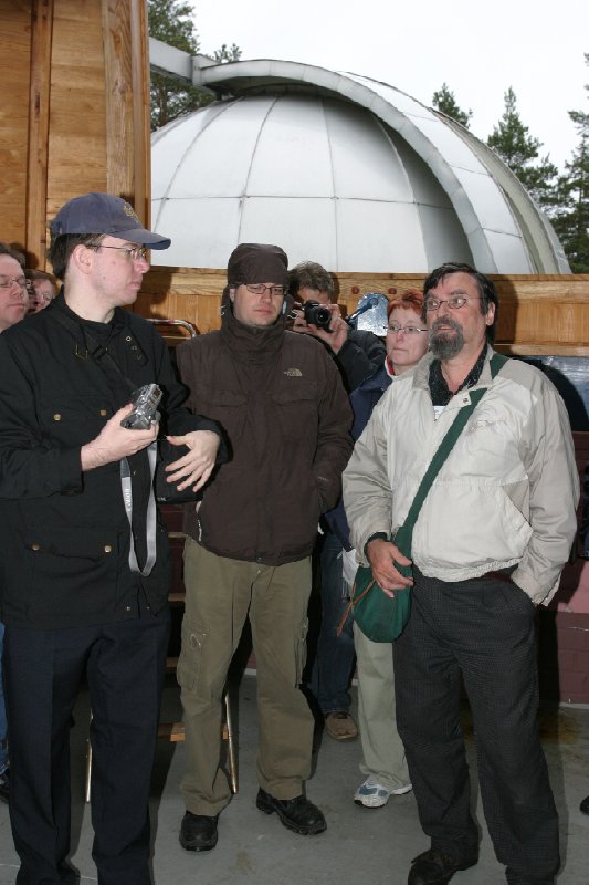 Yliopiston tähtitornissa. Oikealla Seppo Linnaluoto, tähtipäivien
