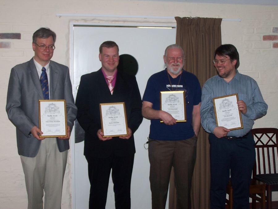 Arvo Kuusela sai palkinnon elämäntyöstä planetaarion ohjaajana ja tähtitieteen esittelystä koululaisille sekä harrastus- ja sivistystoiminnasta Kinnulan Alfa-80 ja Saarijärven Halley-85 -tähtiyhdistyksissä.