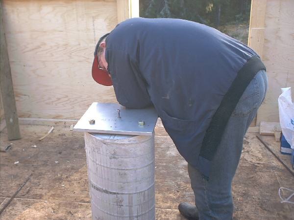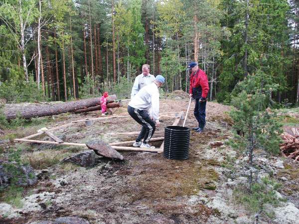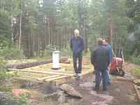 Perustukset, kaukoputken tolppa ja lattian runko on saatu tehtyä. Kuvassa