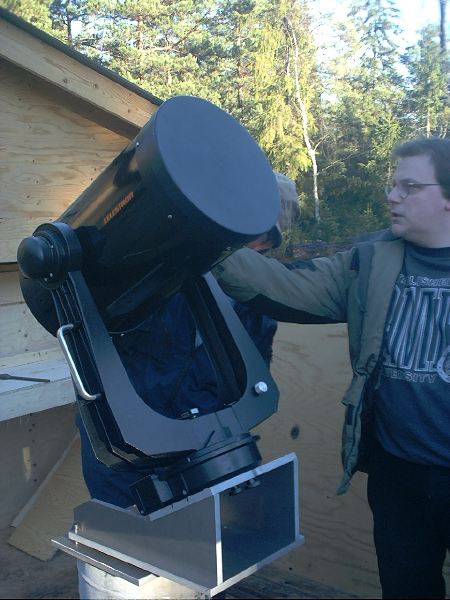 Kaukoputki ja Kaj Wikstedt. Kuva S. Linnaluoto.