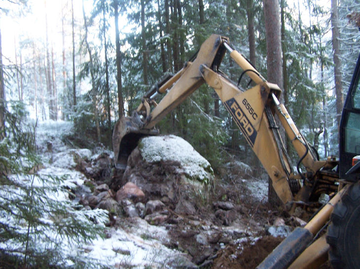 yritti siirtää suurta kiveä tien tieltä. Kuva S. Linnaluoto.