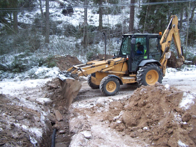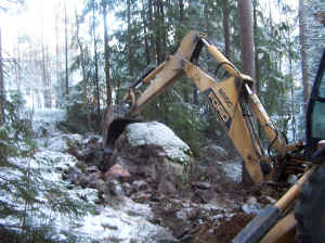 20.12.2005 alkoi lopultakin tienteko ja sähkötyöt. Kaivuri