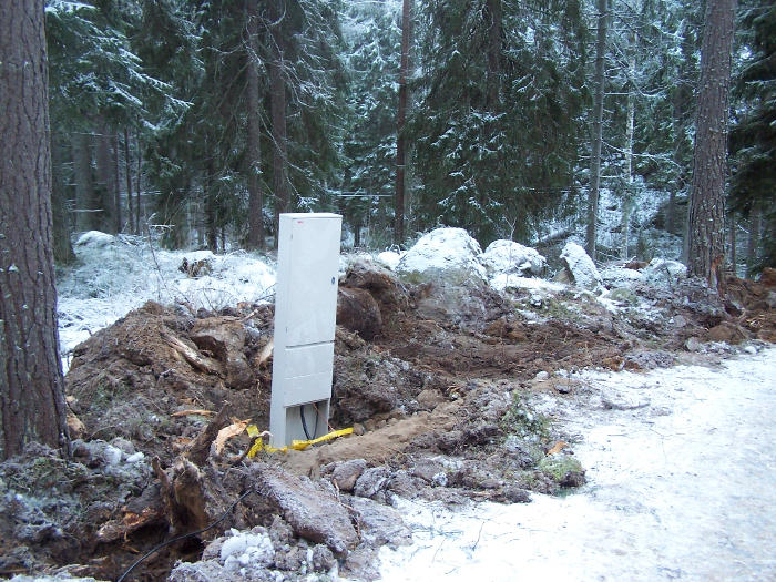 Komeetan sähkökaappi on työmaakopin alapuolella. Kuva