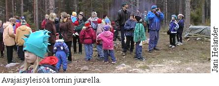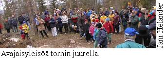 Sää suosi sunnuntaina 24.10. vietettyä Piirivuoren näkötornin juhlavia avajaisia, joita vietettiin Hausjärven Karan koululla reippaan kylähengen merkeissä. Lähikylien Karan, Lavinnon ja Turkhaudan asukkaat olivat varmasti syystäkin ylpeitä aikaansaannoksestaan, sillä vasta muutama vuosi sitten kylien yhteinen koulu, joka nyt toimi tapahtuman keskuspaikkana, oli lopetamisuhan alaisena. Niinpä yhteiseen hiileen puhaltamisen tuloksena syntyi myös pari vuotta toteuttamisen arvoisena ideana pyörinyt torni. Nyt tulevaisuus näyttää paljon valoisammalta ja yhteistoiminta on vahvistanut ja yhdistänyt kyläyhteisöä, miksei myös tornin ympärillä ahertaneita luontoharrastajiakin.