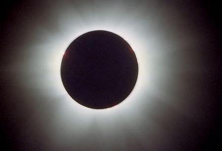 Aurinko oli reilun 30 asteen korkeudella luoteistaivaalla, kun sen viimeiset säteet peittyivät Kuun taakse. Kuun varjon saapumista emme nähneet, mutta pimeys saapui hyvin nopeasti. Maassa liikkui varjonauhoja kohti länttä ja taivaalla loisti upea timanttisormus. Kamerat räpsyivät ja ympäriltä kuului iloisia huudahduksia. Oli kuin ikkuna olisi avautunut avaruuteen, korona loisti sinivalkoisena ja kirkkaanpunaiset protuberanssit pilkistivät kuunreunan takaa Auringon molemmin puolin. Taivaanrantaa kiersi punainen ruska ja taivas pään yläpuolella oli sinimusta. Jupiter loisti kirkkaana Auringon alapuolella ja muutama muukin tähti oli näkyvissä (Orion ja Sirius). Korona näytti melko symmetriseltä joka suuntaan ja ulottui paljainsilmin noin Auringon halkaisijan etäisyydelle. Muutama selvä ja terävä koronasuihku oli myös näkyvissä. Sekunnit tuntuivat pitkiltä, mutta silti tämä kosminen näytelmä oli ohi aivan liian nopeasti. Toinen timanttisormus ja Aurinko alkoi taas häikäisemään, sinimusta taivas häipyi selkiemme taakse kohti kaakkoa ja tähdet hävisivät näkyvistä. Osittaiset vaiheet täydellisyyden jälkeen eivät jaksaneet enää kiinnostaa ja kun ajomatkaa majapaikkaan oli monta tuntia, niin pakkasimme itsemme ja havaintovälineet takaisin autoihin.