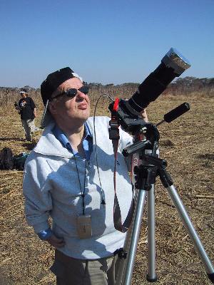 21.6. AuringonpimennysHerätys kello 7 aamulla, Gwembe Safarilta soitettiin ja kerrottiin, että kyytimme tuleekin jo kello 8 aiemmin sovitun kello 10 sijaan. Aamiaisella tapasimmekin Brooksin Ianin (isä) ja Scottin (poika), jotka olivat tulleet meitä hakemaan. Pian seuraan liittyi myös isoisä Joe. Pakkasimme tavarat pariin Nissan Patrolliin ja Acacian safariautoon ja lähdimme kohti pimennyspaikkaa, joka oli keskilinjalla 50 km Lusakan pohjoispuolella. Sää vaikutti erittäin hyvältä, ei pilvenhattaraakaan taivaalla, tielläkään ei ollut pelättyjä ruuhkia, joten olimme nopeasti perillä.