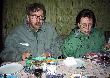 Tyytyväisin mielin kävimme illalliselle ja keskustelimme päivän tapahtumista. Istuskelimme vielä hetken nuotiolla, olihan juhannusaatto. Taatusti erilainen ja mieliinpainuva juhannus! Tähtitaivas oli upea, linnunrata kaartui suoraan pään yli, Mars loisti kirkkaana Skorpionin kyljessä ja Etelän risti näkyi etelätaivaalla. Hiilisäkkisumu näkyi mustana reikänä, muuten kirkkaana loistavassa Linnunradassa. Nukkumaan käydessämme leijonien karjunta kuului vaimeana kaukaa leirin itäpuolelta.
