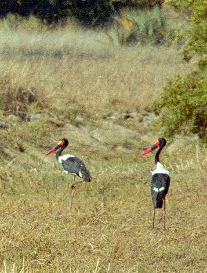 Aamiaisen jälkeen pakkasimmekin taas tavarat autoihin ja lähdimme paluumatkalle tarkoituksenamme pysähdellä usein ja etsiä eläimiä. Emme ehtineetkään ajaa kuin muutaman sata metriä kun näimme komean satulahaikaraparin joenpenkalla. Kiikarit ja kaukoputket kohti lintuja ja kamerat räpsyivät ja surisivat. Lisää lintuja: korppikotkaparvi nousevassa ilmavirtauksessa, kymmeniä ja taas kymmeniä suuria kotkia kaartelemassa taivaalla. Markku oli innoissaan ja tunnisti useita uusia lajeja kaukoputkellaan.