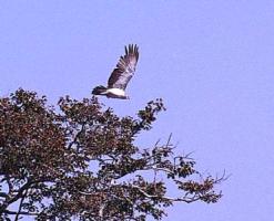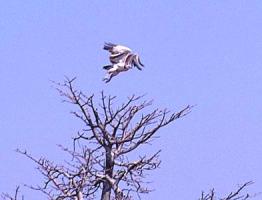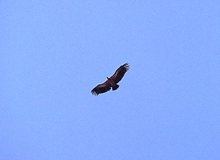 Kafuessa taivaalla kaarteli vielä isompi parvi, jossa löytyi jo oikein mukava valikoima raadonsyöjiä. Enemmistö (ainakin 50 lintua) oli savannikorppikotkia mutta lisäksi parvessa oli muutama korvakorppikotka (Lappetfaced Vulture)ja yksi kirjokorppikotkakin (=harvinainen, Whiteheaded Vulture). Korppikotkia voi bongata myös TV1:ssä lauantaisin klo 18.50, jolloin Avara Luonto mässäilee usein raadoilla ja korppiksilla. Suuri osa ko. linnuista on juuri savanni- ja korvakorppikotkia. Haukkoja näkyi myös monta eri lajia, joista osa hyvinkin mielenkiintoisia. Koska kaikkeen kiinnostavaan valitettavasti ei voi panostaa, tyydyn pelkkään luetteloon : Hiirihaukka (Steppe buzzard), rosvohaukka (Gymnogene), Afrikansuohaukka (African Mash Harrier), Liitohaukka (Blackshouldered Kite), Pikkulauluhaukka (Gabar Goshawk) ja erakkotuulihaukks (Dickinson's Kerstel). Paikallisesti harvinaisin isoista linnuista oli kaulustrappi, joka lensi tien varresta syrjemmälle jossain matkalla Chomasta Livingstoneen.