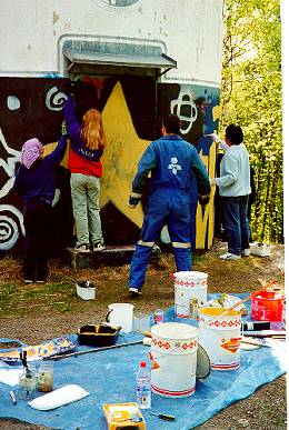 Graffittikilpailun tuloksetJyväskylän Sirius ry järjesti keväällä 2000 nuorille suunnatun graffitin suunnittelukilpailun. Graffitilla oli tarkoitus peittää Rihlaperän tähtitornin töhrityt seinät. Kilpailuun saapui kymmenkunta hienoa suunnitelmaa, joista Siriuksen hallitus valitsi voittajaksi Halssilan koulusta Erno Jussilan suunnitelman.Erno toteutti suunnitelman yhdessä koulutovereidensa kanssa toukokuussa. Nyt tähtitornia kiertää hieno avaruusmaisema. Toivottavasti se myös säilyy töhrimättömänä pitkään. Sirius haluaa kiittää kaikkia kilpailuun osallistuneita ja maalit lahjoittanutta Tikkurila OY:tä.