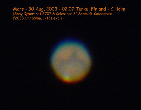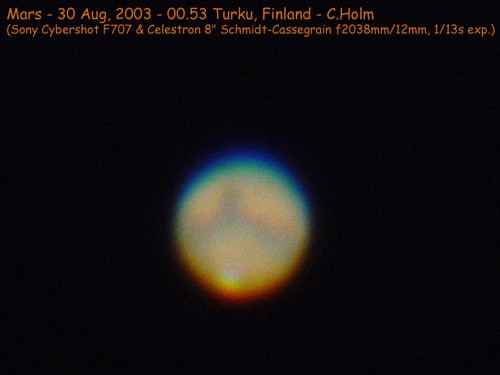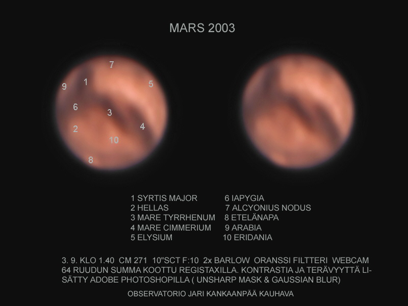Jari Kankaanpää: 10 " Meade Lx50 SCT Philips To Ucam / Celestron Ultima Barlow / Punainen filtteri / 50 kuvan summa koottu Registax:illa 19.8 2003 klo about 3