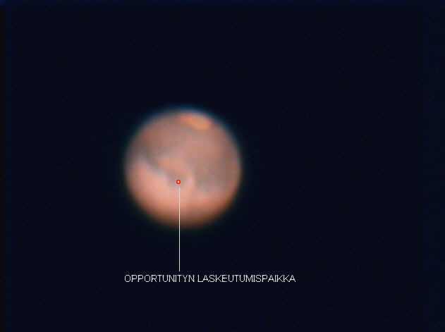 Jari Kankaanpää: Sinus meridiani Opportunity-luotaimen laskeutumispaikka näkyy kuvan keskellä (Etelä ylhäällä)