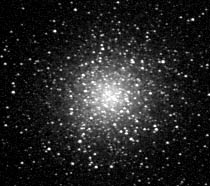 Pallomainen tähtijoukko Messier 13Neljäs koekuva Nyrölästä samalta illalta. Tämä pohjoisen tähtitaivaan suurin pallomainen tähtijoukko näkyy myös hienosti, vaikka kaukoputken koko erotuskyvystä ja suurennuksesta on käytössä vain pieni osa. Kuvatessa käytettiin kameran "Track and accumulate" toimintoa ja tämä kuva on yhdistetty neljästä 30 sekunnin erillisestä valotuksesta joten valotusaika oli 120s. Kuvattu 15.3.1999 noin kello 0.40.