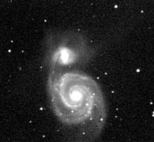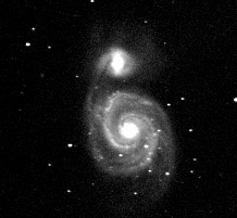 Spiraaligalaksi Messier 51Tämä on ensimmäinen koekuva Nyrölästä ST-7 CCD-kameralla kuvattuna. Kuvassa näkyy galaksin pienemmän seuralaisen uloimpia, hyvin himmeitä osia. Valotusaika oli vain 60s. Kuva otettiin 14.3.1999 noin kello 23.30.Sen vieressä on kaksi viikkoa myöhemmin otettu kuva samasta kohteesta, mutta tällä kertaa valotusaika oli 600s. Keli oli huono, täysikuu paistoi taivaalla (!) ja lämpimästä päivästä johtuen taivaalla oli aika paljon utua. Havaintolaitteena oli kymmenen tuuman Meade LX200. Sen "isoveli", 16 tuumainen Meade LX200 saapuu meille toukokuussa 1999 ja mahdollistaa vielä paljon himmeämpien kohteiden havaitsemisen samalla valotusajalla.
