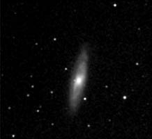 Spiraaligalaksi Messier 65Kolmas koekuva Nyrölästä samalta illalta. Tästäkin Leijonan galaksijoukon jäsenestä erottuu sen spiraalirakenne helposti. Valotusaika 60s. Kuvattu 15.3.1999 noin kello 0.20.