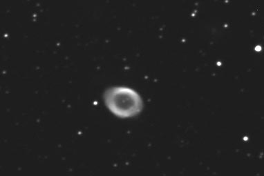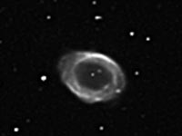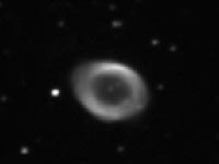 Planetaarinen sumu Messier 57Ensimmäinen kuva jossa käytettiin 10 tuumaisen Meade-teleskoopin täyttä erotuskykyä hyväksi. Vaikka seeing-olosuhteet olivat kuvaushetkellä surkeat, niin tulokset ovat hämmästyttäviä. Keskustähti ja sen himmeämpi seuralainen erottuvat helposti, samoin sumun rakenteesta erottuu monia yksityiskohtia. Kuvat ovat osasuurennuksia alkuperäisestä kuvakentästä. Valotusaika oli 600s. Kuvattu 11.4.1999 noin kello 1.30.Toinen kuvista on käsitelty CCDSharp ohjelmalla, jossa käytetään ns. Lucy-Richardson Deconvolution -algoritmiä. Se vaatii koneelta erittäin paljon laskentatehoa. Oheista kuvaa 300mhz Pentium-laitteisto laski noin kaksi minuuttia. Ohjelman algoritmi suunniteltiin alunperin käytettäväksi Hubble avaruusteleskoopin kuvien korjailuun mutta nykyään PC-tietokoneiden kehitettyä tarpeeksi tehokkaiksi se on tullut käyttöön harrastajienkin laitteistoissa. Takaisin edelliselle kuvasivulle.