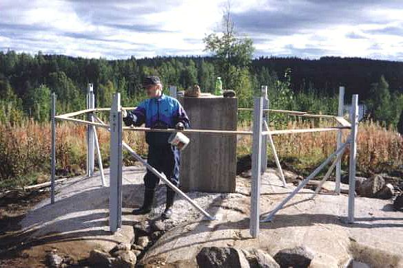 Metallisen tukikehikon paikat oli mitattava tarkasti, jotta valmis kupu kävisi sen päälle.