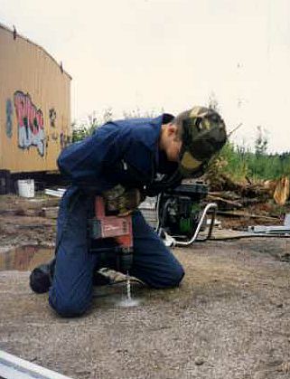 Kun tarkka paikka oli selvitetty, kallioon porattiin kiinnitysreijät tukiraudoille.