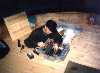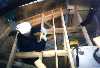 Antti askarteli lattian tukirakenteen ja lattialankut niiden päälle.