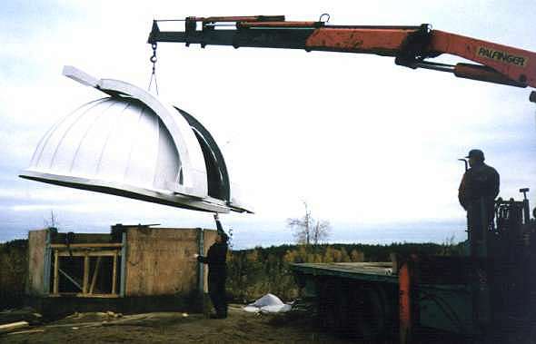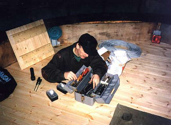 Kun seinät olivat kiinnitetty niin rakenne oli tukeva ja kupu voitiin nostaa paikoilleen. Pienen säädön jälkeen kupu alkoi myös pyörimään.