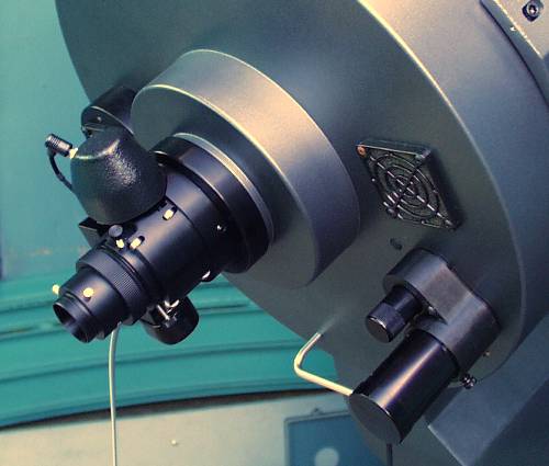 Nyrölän Observatorio16-tuumaisen Meade-teleskoopin käyttöohje Päivitetty 21.1.2001 Teknisiä tietojaKaukoputki on tyypiltään Schmidt-Cassegrain, eli siinä on pallopintainen pääpeili ja erityisen korjauslinssin keskelle kiinnitetty kupera apupeili. Pääpeili on hyvin lyhytpolttovälinen, joten putkikin on lyhyt. Kupera apupeili pidentää polttovälin täyteen neljään metriin ja heijastaa kaukoputken keräämän valon pääpeilin keskellä olevasta reijästä kaukoputken taakse. Korjauslasi korjaa pallopintaisen pääpeilin kuvausvirheitä.