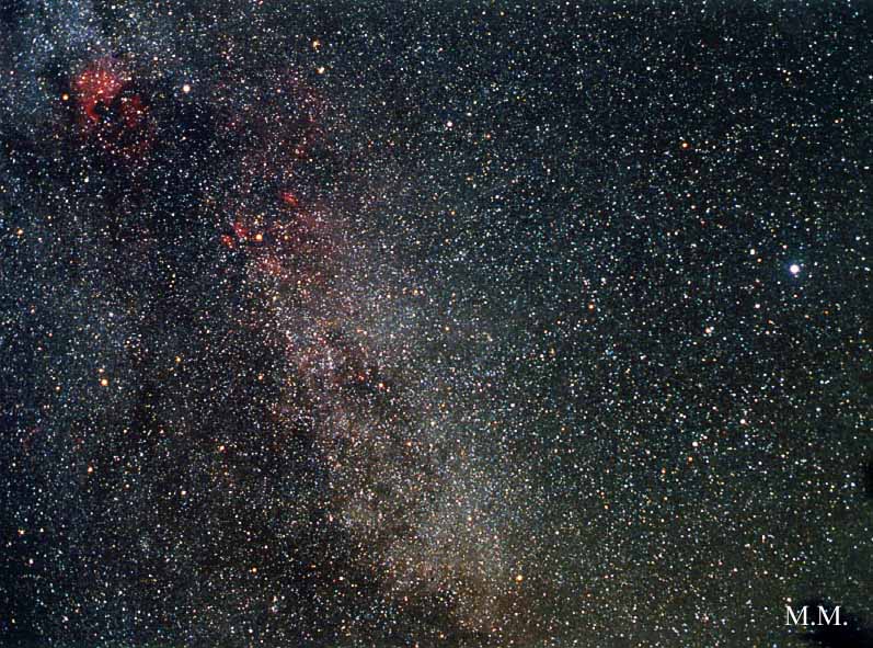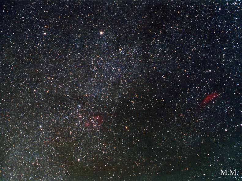 3.10.1997. Joutsenen ja Lyyran aluetta. Ylävasemmalla Pohjois- Amerikkasumu NGC7000,
