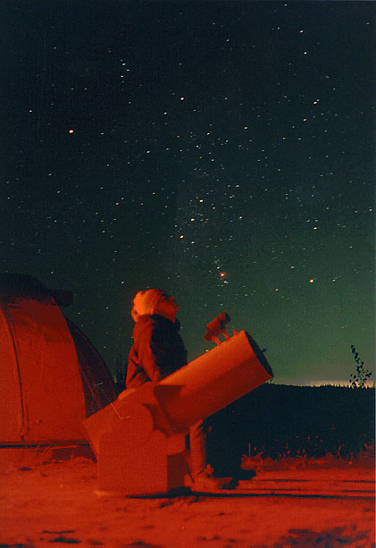3.10.1997. Tähtiharrastaja itse tehdyn kaukoputken kanssa sijoitustaan odottavan